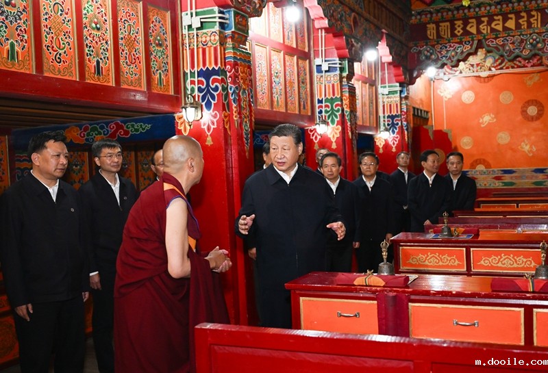 6月18日至19日,中共中央总书记、国家主席、中央军委主席习近平在青海考察。这是18日下午,习近平在位于西宁市城中区的宏觉寺考察。新华社记者 翟健岚 摄