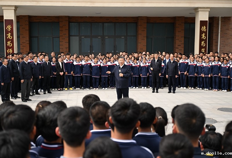 教学楼前广场上,师生们纷纷围拢过来,高声向总书记问好。习近平亲切地对大家说,我到西宁第一站就来看望老师和同学们。上海援建的这所中学,培养来自果洛牧区的各民族孩子,成效明显,意义深远。希望孩子们倍加珍惜这里的良好条件,心怀感恩、好好学习,德智体美劳全面发展,立志成为中国特色社会主义事业的接班人和建设者,努力为自己赢得人生出彩的机会。他祝孩子们学有所成、健康成长。